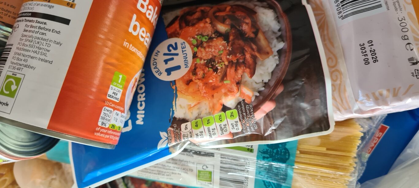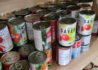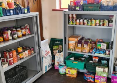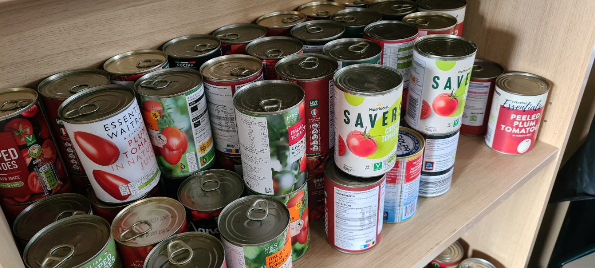 We operate a system where people fulfilling a voucher for a food parcel can come to the building to choose what food what they want. People go around with a trolley and pick which foods they would like from what we have in stock.