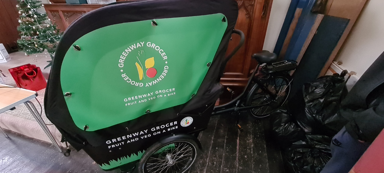 Since starting in 2021, the Greenway Grocer uses a bike to deliver fresh fruit and vegetables to different areas along the Greenway.